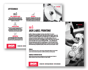 BGR offers custom label printing services throughout the retail and industrial industries, from custom bottle label printing to custom barcode label printing for inventory tracking. Unlike other label printing companies, our expertise across the entire packaging supply chain allows us to take an end-to-end approach to your labeling strategy–from selecting the best packaging and material to installing your next label applicating system. Our decades of experience help us proactively identify ways to save you money while delivering exceptional custom labels. Let us put our full staff to work for you.